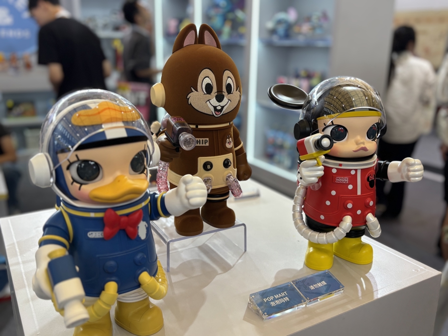 从⽑绒玩偶到公仔盲盒,从可拼装玩具到⾼互动机器⼈,从⽇常的爬爬垫到凝结传统⼯艺匠⼼的收藏级⼈偶……现场产品品类丰富多元,产品设计充满奇思妙想,既满⾜⼩朋友,也满⾜“⼤孩⼦”(kidult)的“玩⼼”需求。