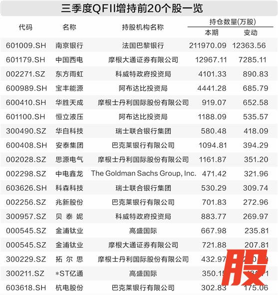 QFII总体继续加仓A股 第三季度超120只个股获增持QFII总体继续加仓A股 第三季度超120只个股获增持