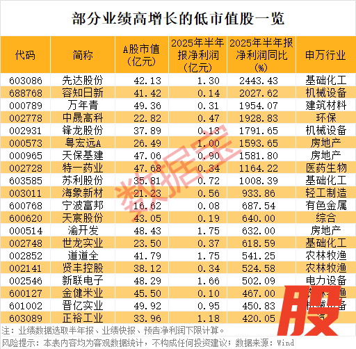 部分业绩高增长的低市值股出炉部分业绩高增长的低市值股出炉
